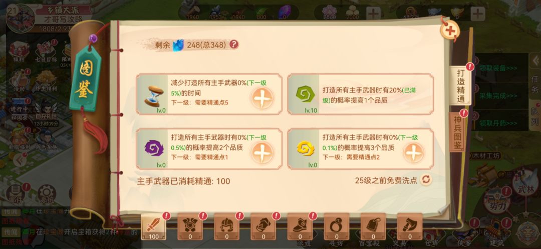 记住一点:前期打铁就是为了尽快将铁木皮等资源转换为铜币,开图纸是为了不浪费资源,开几系精通也是为了资源互补。凡能持续获取的道具,用就用了,放着不下崽儿,何必当初恋一样宝贝呢😄