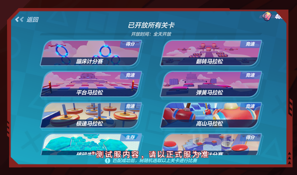 本次「畅游吼姆世界-狂欢赛」将额外新增「蹦床计分赛」、「翻转马拉松」、「平台马拉松」、「弹簧马拉松」四张新地图。