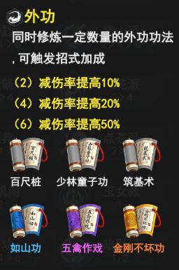 1. 主体6外功无脑拿(6外功拿齐同时还会促发2少林派加血),然后后期再拿“五行秘术”升到3星促发外功功法星级+1,这个功法见到可以直接拿,建议尽量把外功先升到2星,然后再把“五行秘术”升到3星,这样性价比会更高