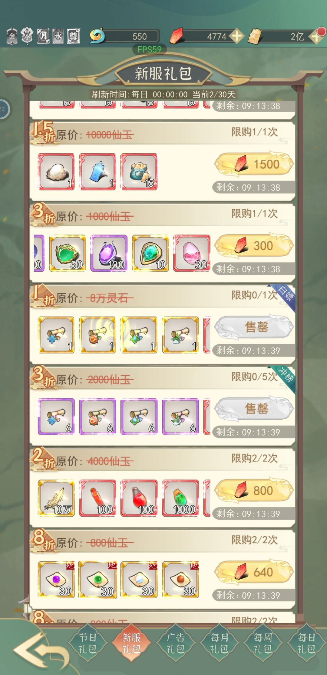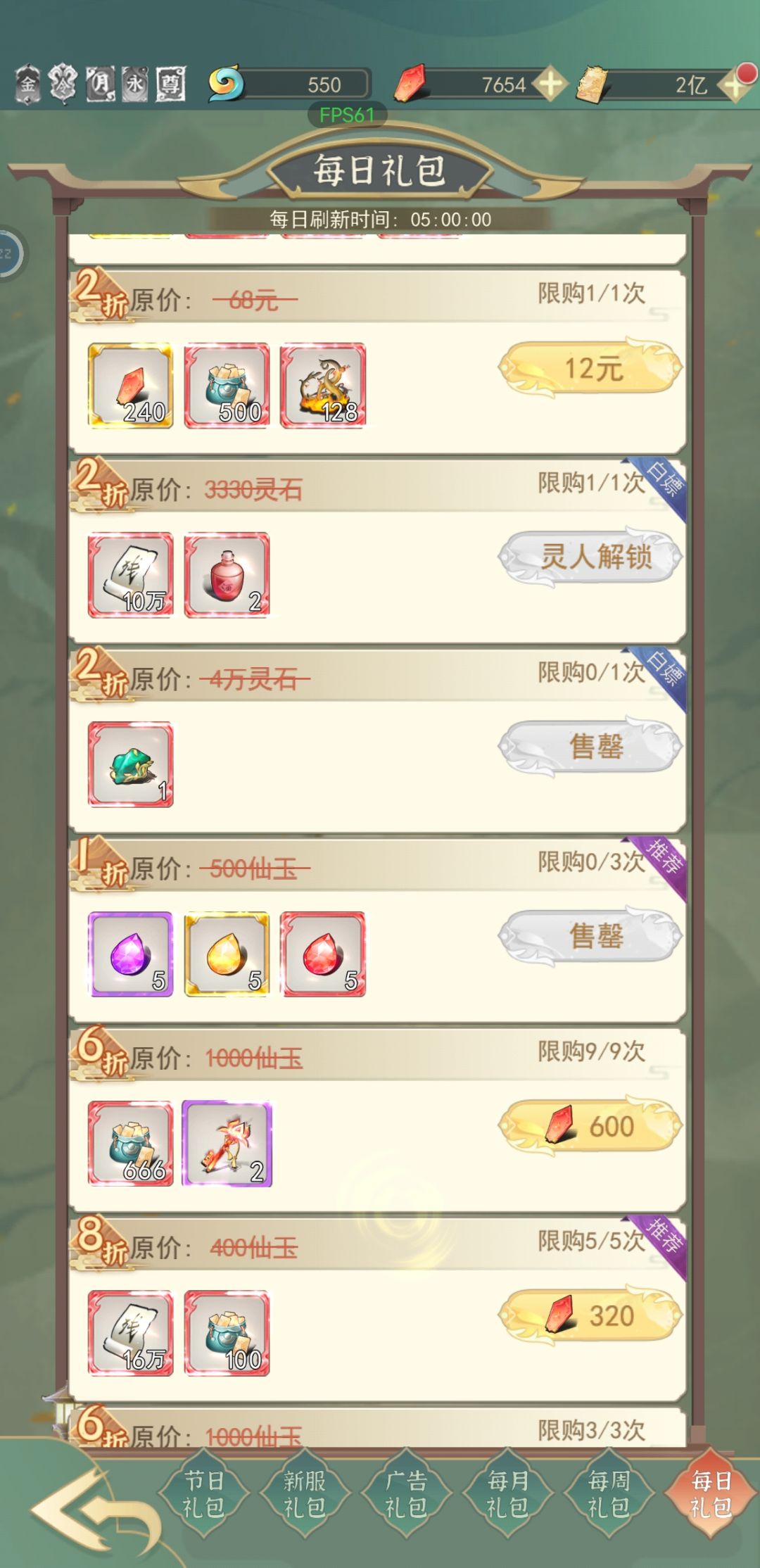 人间最值得讲的是游商和礼包。游商金蛋开,礼物直接全买光,然后前几天要刷新满50次,别觉得亏,刷新有些东西是免费的。