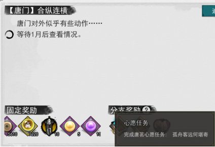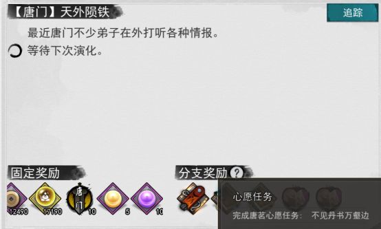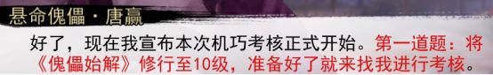 (开局那个选择武斗一脉)完成第一个情缘之后1个月返回唐门参加机巧考核,第一个考核是修行傀儡始解10级(直接去唐赢那边学武学后吃经验丹就行),第二个考核是和唐幽篌比试,第三个考核是和唐茉茉比试(先学点攻击武学就行),之后完成考核,然后等待1个月,之后在唐老太太那边接到任务前往嵩山龙门镖局,然后潜入龙门镖局,之后前往库房打乱结盟计划,打败唐百虎之后回唐门找唐老太太对话,之后完成这个情缘。