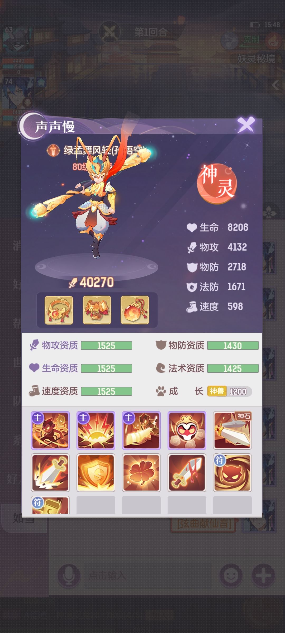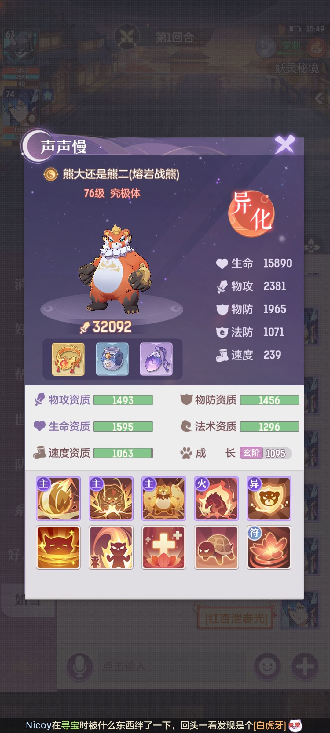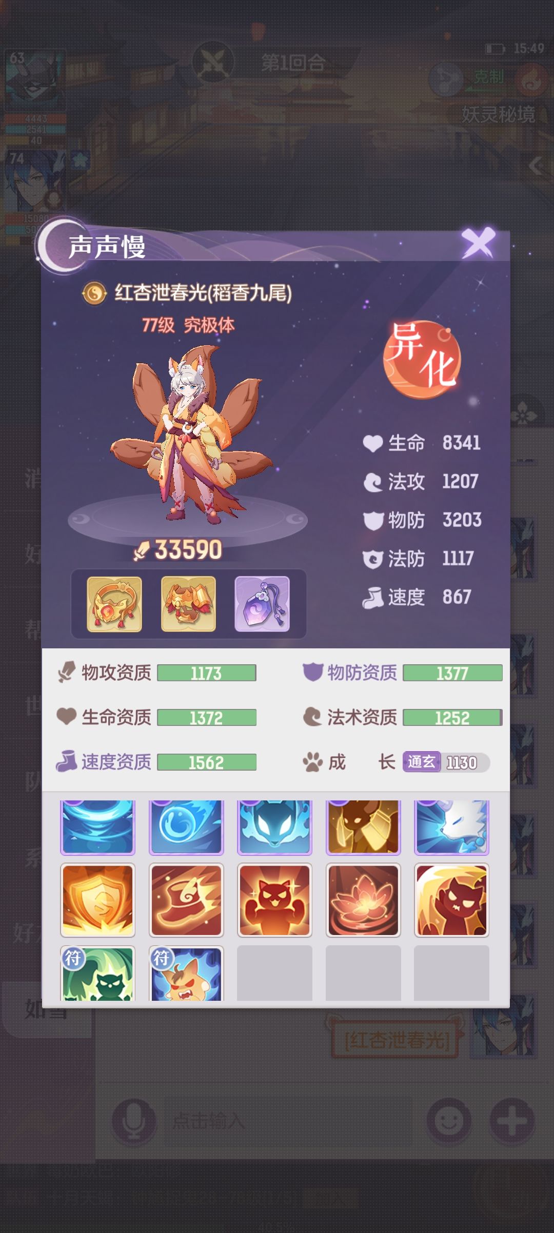 主力3宠物①内丹3克制隐身猴(吃满物攻速度资质,满妖魂果)