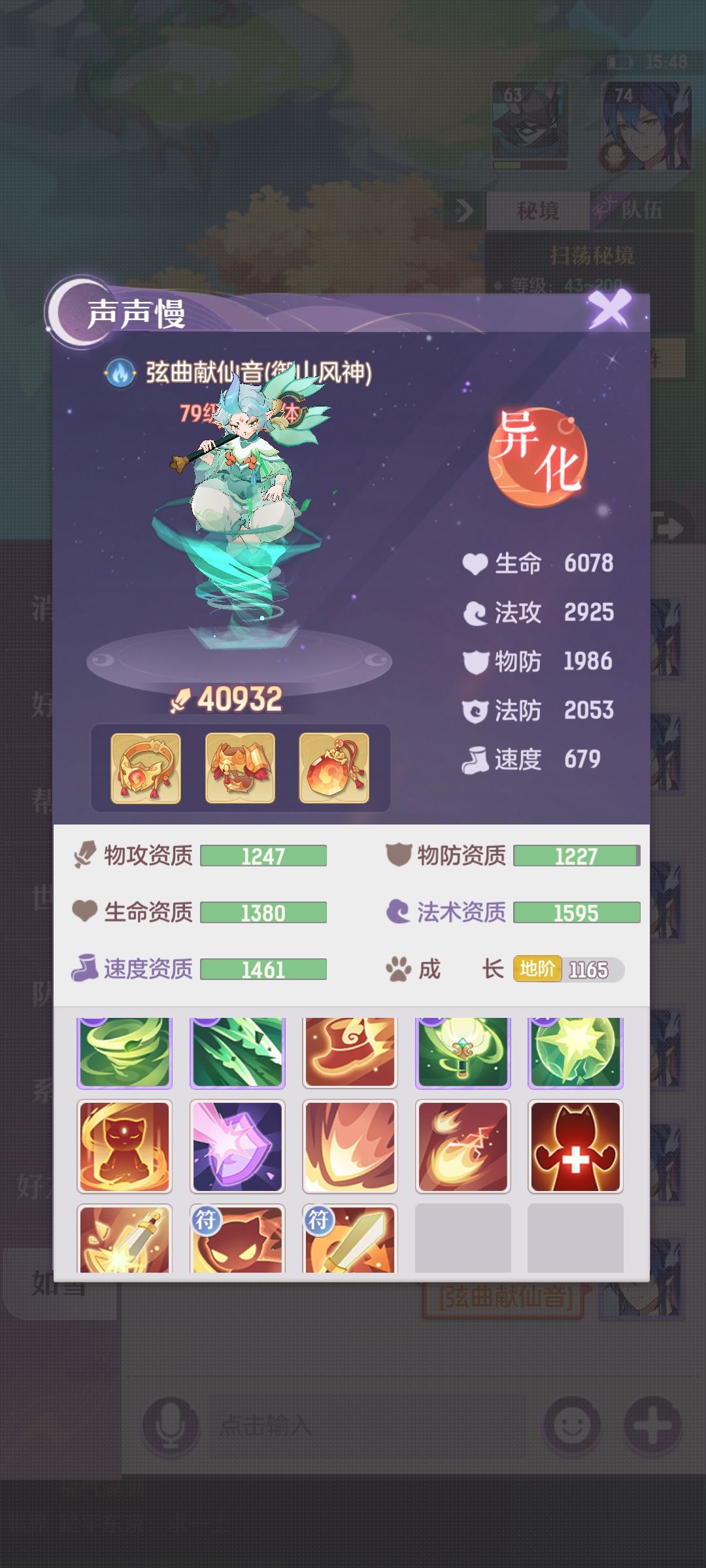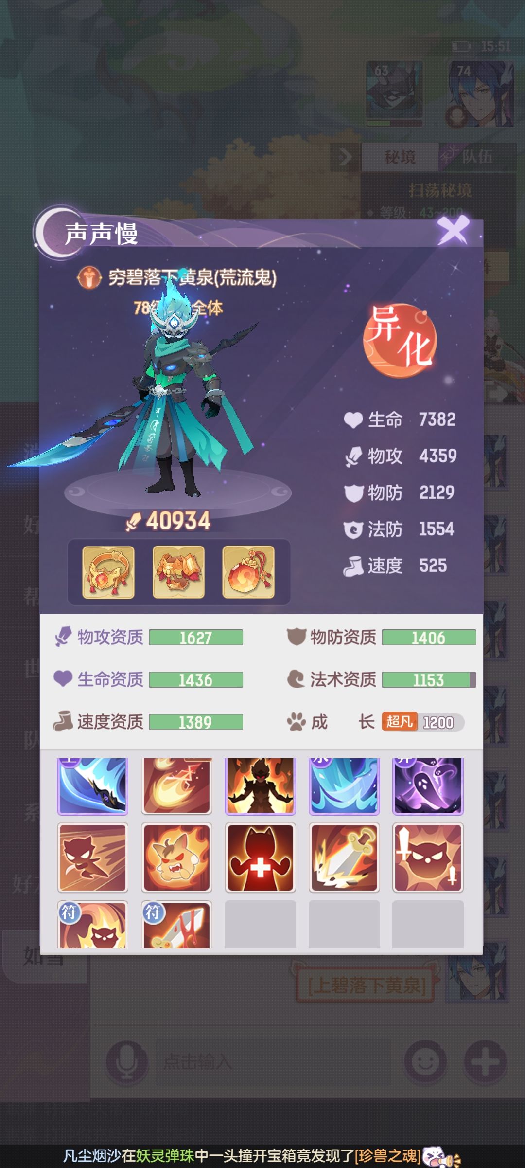声声慢,官服物华天宝充值60元74级青丘一枚(未吃烹饪日常属性)