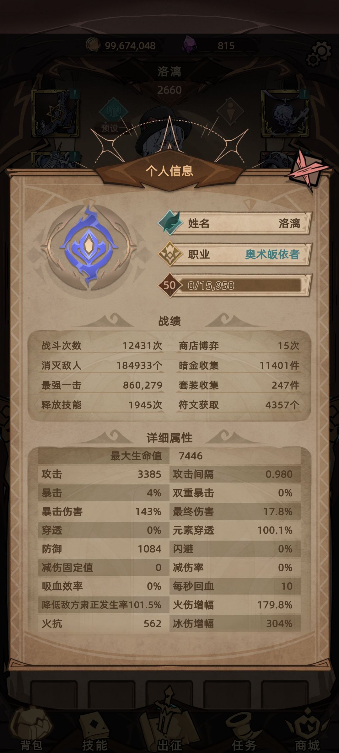 先贴一下自己的面板,算是比较完美的属性了。