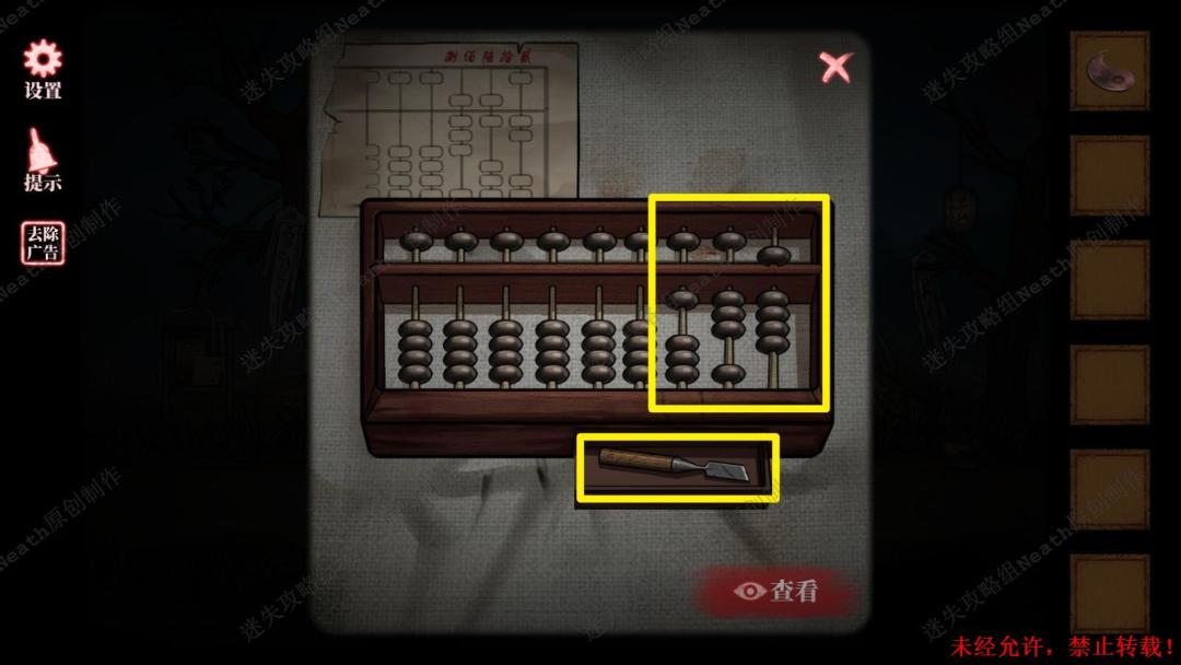 24、查看白色桌子上的算盘,根据示例得知算盘最右边的三组算珠代表百位十位个位,在算盘上拨出代表139的算珠即可,如下图所示,完成后拿走暗格里的【斜刃铲】。38 38.1
