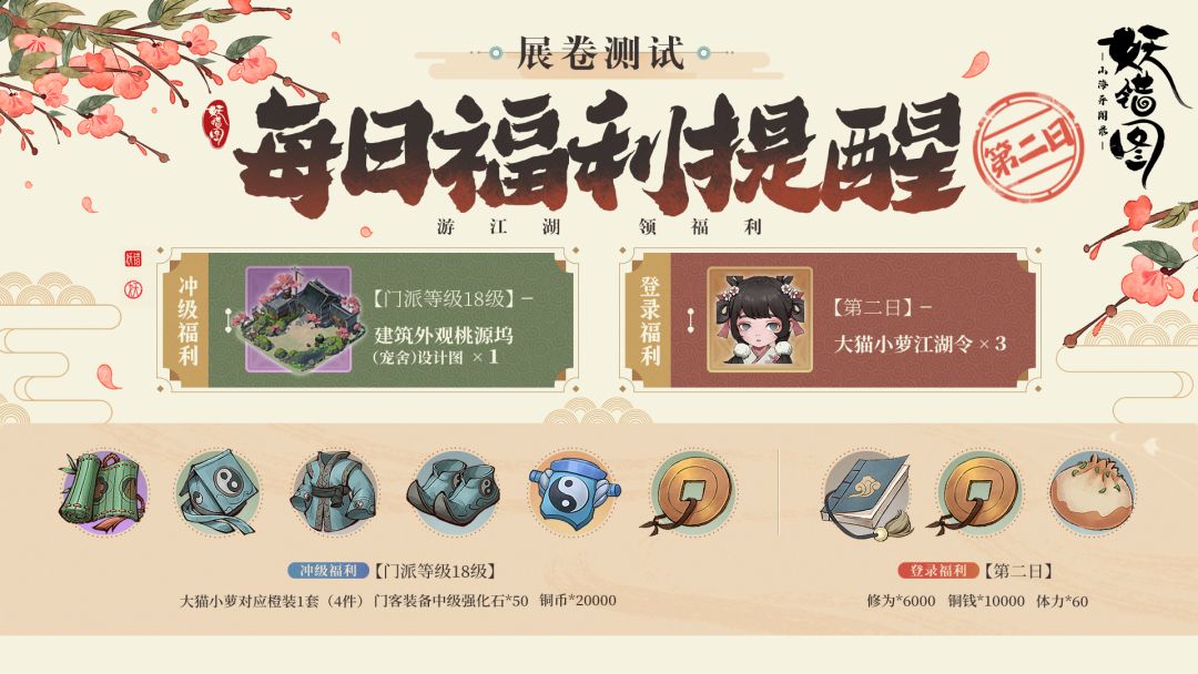 有了大猫小萝的对应橙装,自然也不能缺少这位可爱门客。在登录即可领取的七日之约活动中,掌门可以获得大猫小萝江湖令,结识这位门客。另外今日登录,还可以直接领到修为*6000、铜钱*10000、体力*60,助力你的江湖之路。
