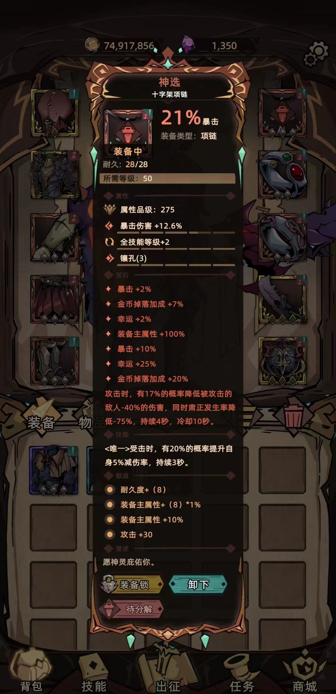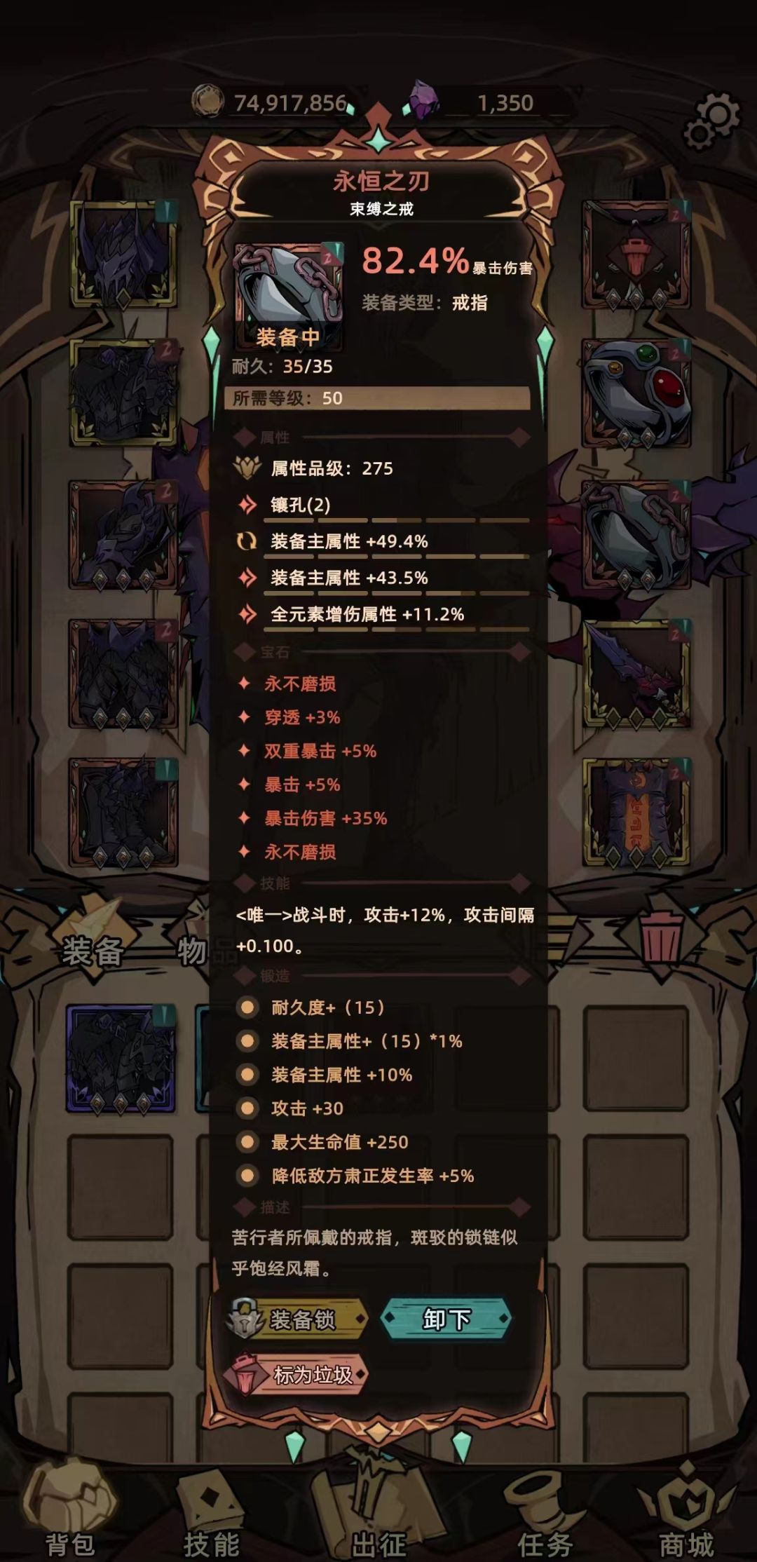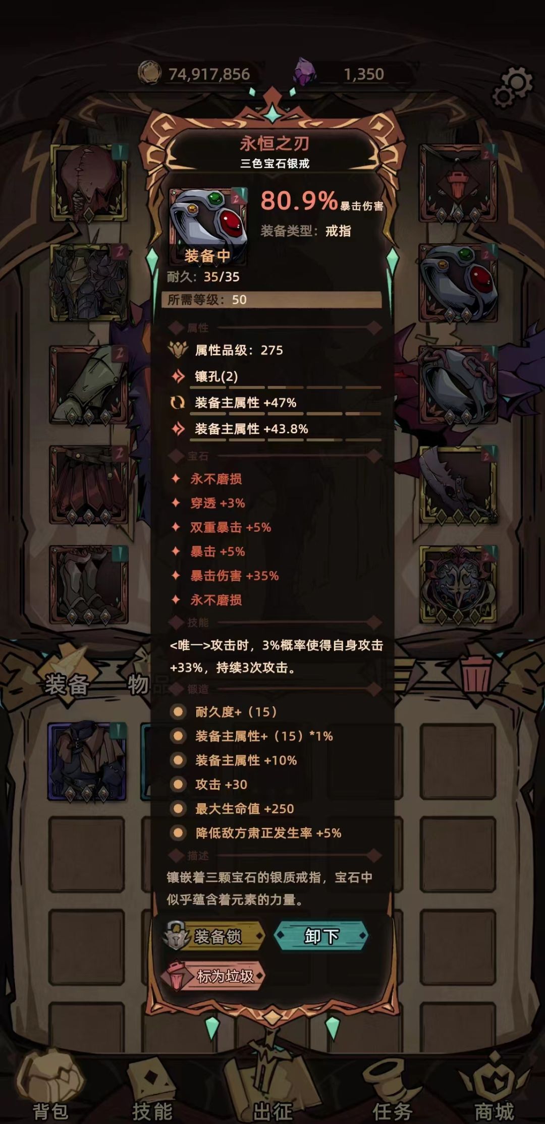 3. 戒指项链分析:提供海量暴击率和暴击伤害,基本可以达到90+暴击率和350%暴击伤害