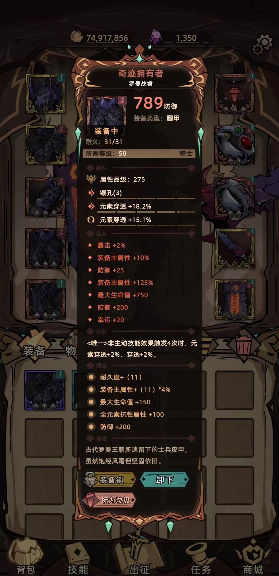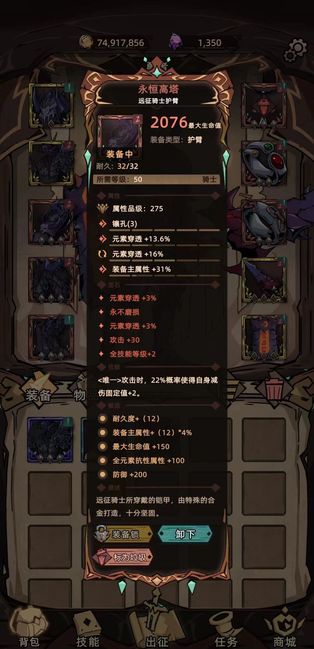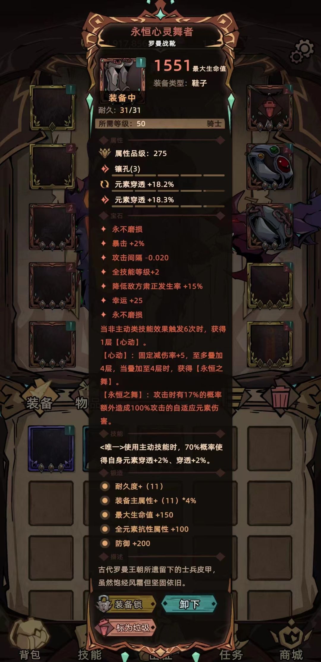 2. 词条要求:至少要能满足元素穿透100%,镶孔(1/2孔都行,主要用来镶嵌传奇宝石),电免穿透,剩下的词条优先级为全元素增伤>全技能等级>装备主属性>暴击>暴击伤害: