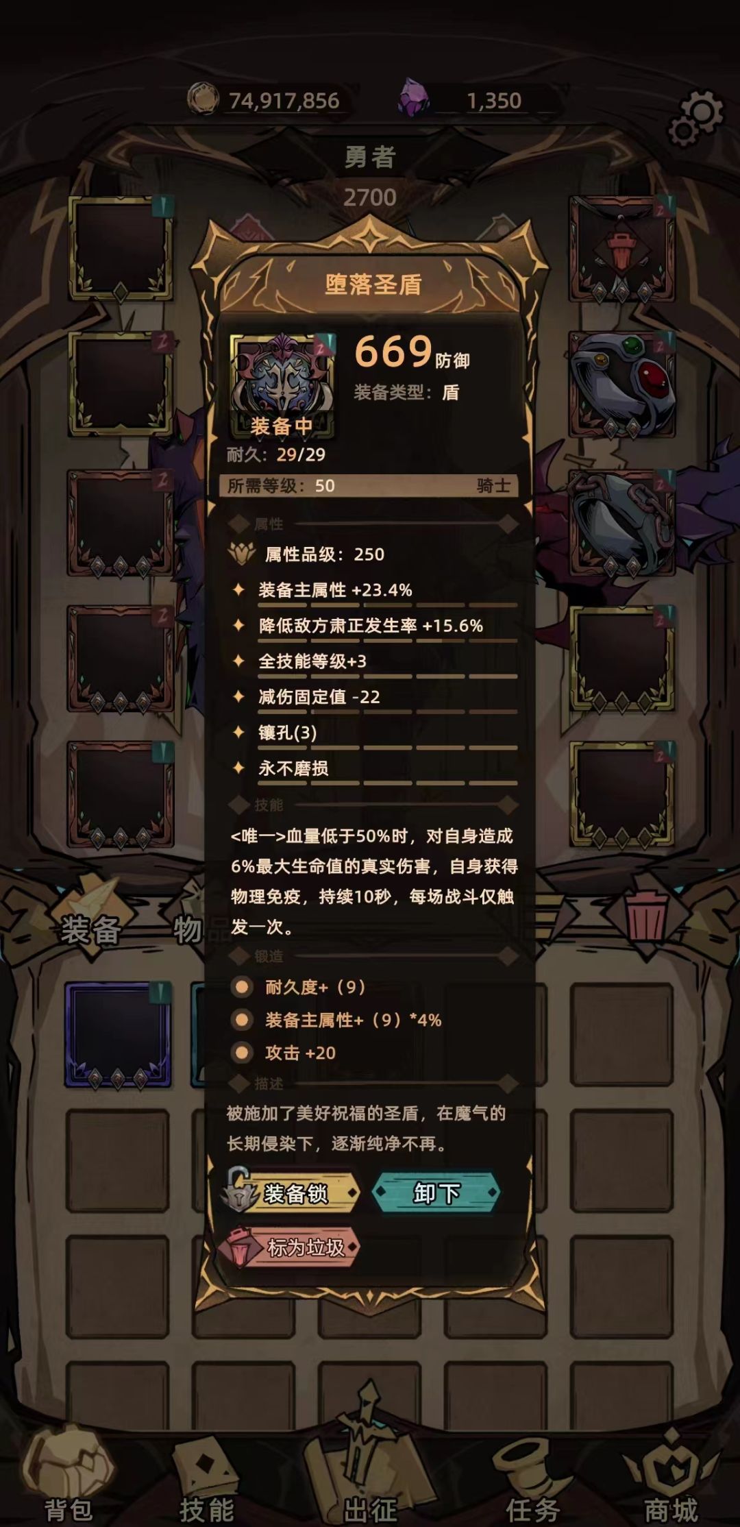 2. 副手分析:堕落圣盾提供全技/减肃正/镶孔