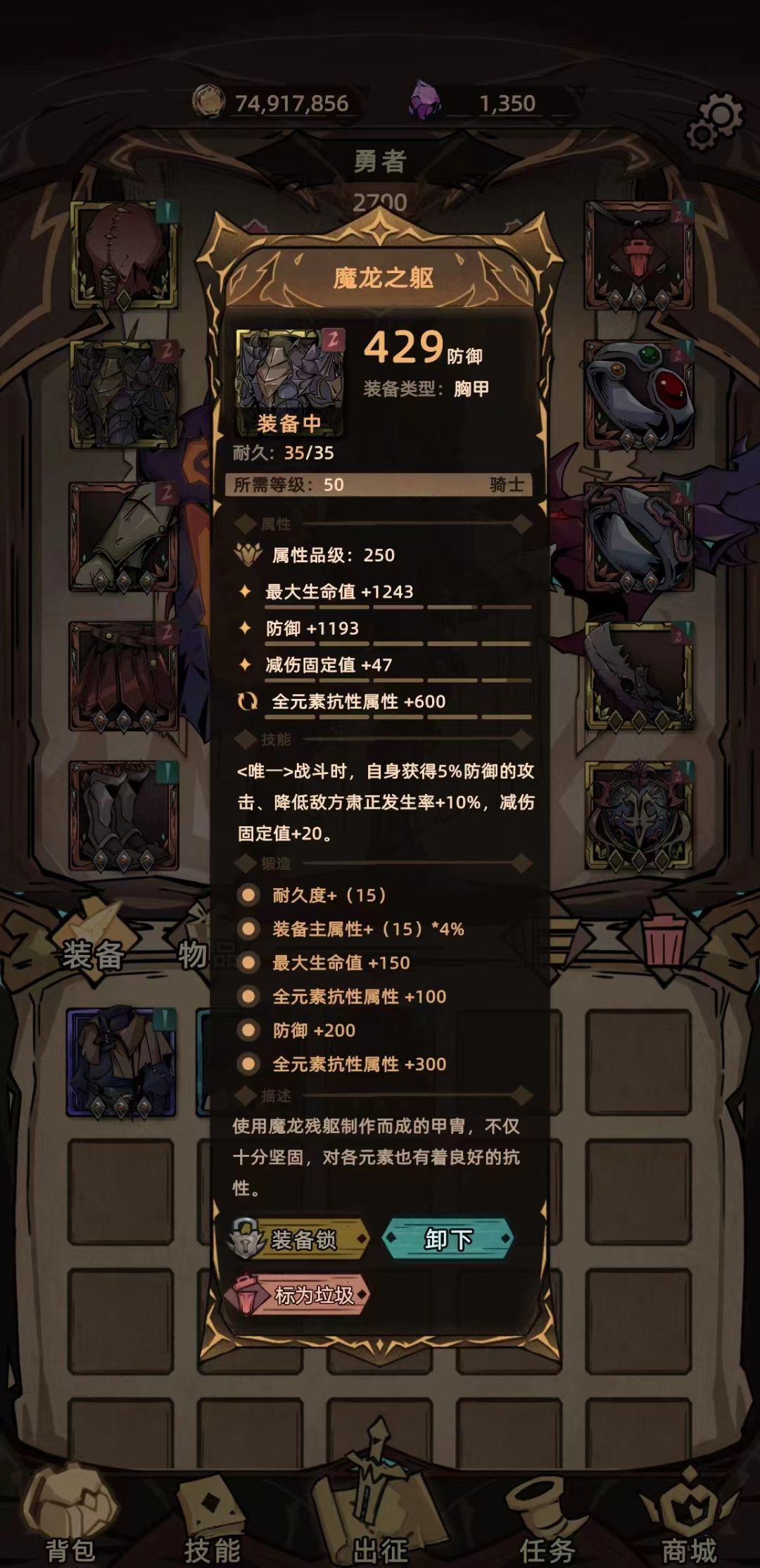 胸部-魔龙之躯(暗金装备-魔界深渊6掉落)