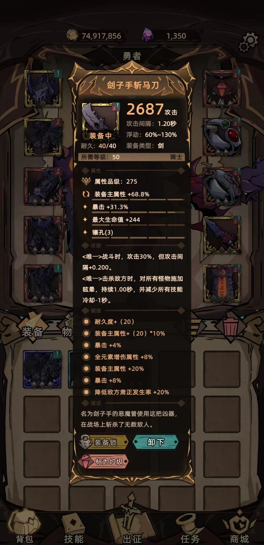 1. 武器分析:刽子手斩马刀强化到30能提供:42%暴击/减20%肃正/40%暴击伤害/320%主属性提升(远大于其他武器强化);武器自带攻击30%增幅/每击杀一个敌人减1秒CD