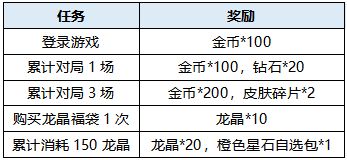 活动期间,消耗龙晶*10在【商城】-【道具】购买【龙晶福袋】,打开福袋有机会获得皮肤自选箱、表情自选箱等惊喜好礼哟。