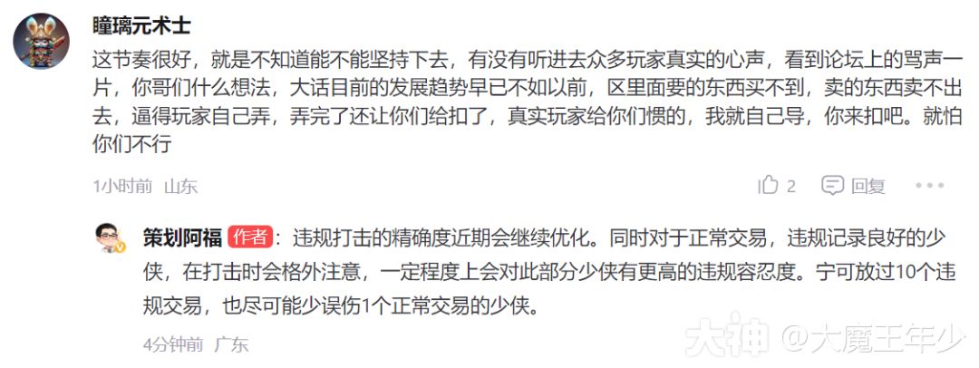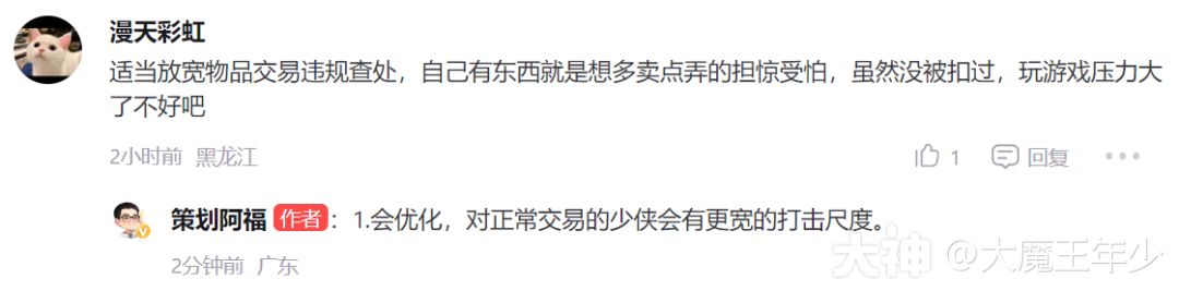 解读:阿福这个回答虽然不知道是否能够更加精准,但令好多玩家心情大悦,因为好多玩家被误伤的同时,也对游戏的公平性产生了质疑,这个精准打击,于玩家申诉能够更多的及时进行恢复,最好能够出一个专属人工客服,处理这些时间,不要我正常玩游戏,你扣除我正常出售所得。