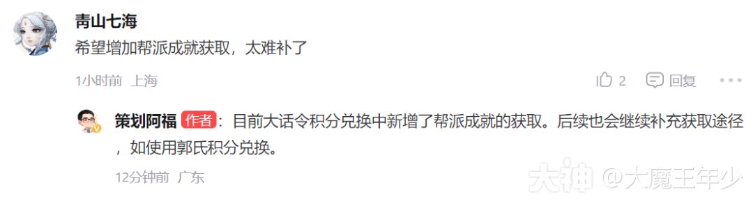 解读:这个郭氏积分换帮派成就可以的,毕竟不是所有玩家都能挖宝,增加帮派成就产出这个是很好,例如地宫,大雁塔积分,虽然旨在培养大家均衡发展的同时,也能够某点抢,例如很多游戏都会有绝活哥,让玩家自己选择是否均衡会更好一些,毕竟大家对游戏理解,各有不同。
