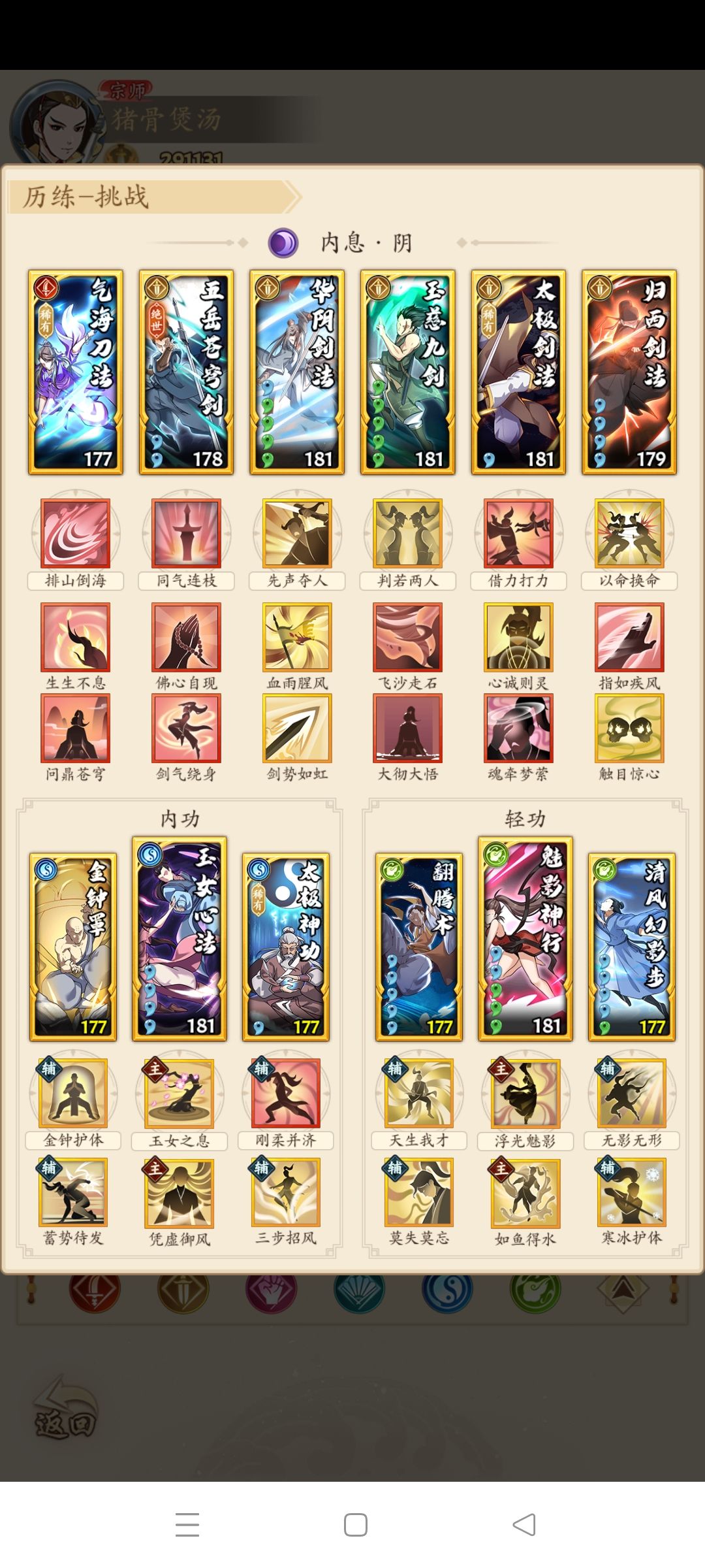 外功五号位置太极剑法,与太极神功配合百分百出手,并且对方攻击高于自身,用对方攻击属性计算,不愧是借力打力,清心惊以及困惑,更是锦上添花。