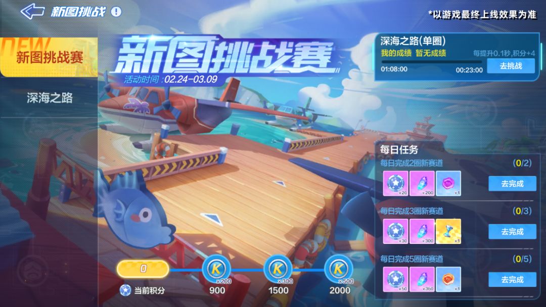 2月24日-3月9日期间将开启新图挑战赛,车友们完成新图挑战,即可获得奖励和积分。奖励包括时间沙漏、紫色幸运币和橙色幸运币,而积分可用于兑换酷币。活动结束时,计时挑战成绩排名在全区前100名的车友,可获得新图拓荒者*30天称号哦~
