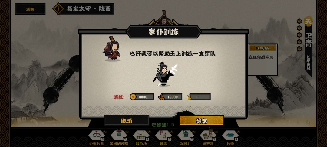 武刚车:这是卫青唯一一个会增加消耗的技能,这张卡牌可以在任何场景使用,血量大概是1.5个正常枪兵,步兵在其身边不会溃逃,几方任意类型兵种在其身边可以增加军心,可以拦截冲锋,可以高覆盖率地吸引火力,虽然没有毁天灭地的实力,但是一个门槛超低,并且专门用来克制骑兵的肉盾援军,这种含金量你应该是明白的,相信你也知道怎么合理运用
