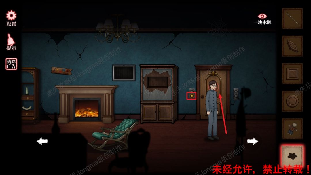 26.向右走,查看墙壁上木板图案。26