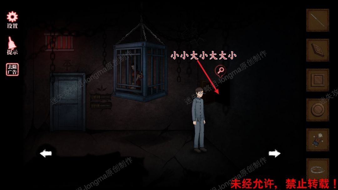 61.查看门右边墙壁机关,按照如图61的步骤放下铁笼(穷举法)。61