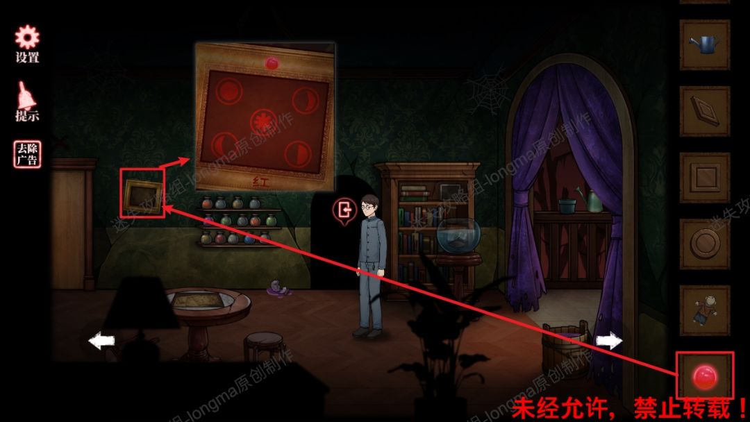 48.退出密室,将【夜明珠】安装在门右边画框上,记住出现的图案。48