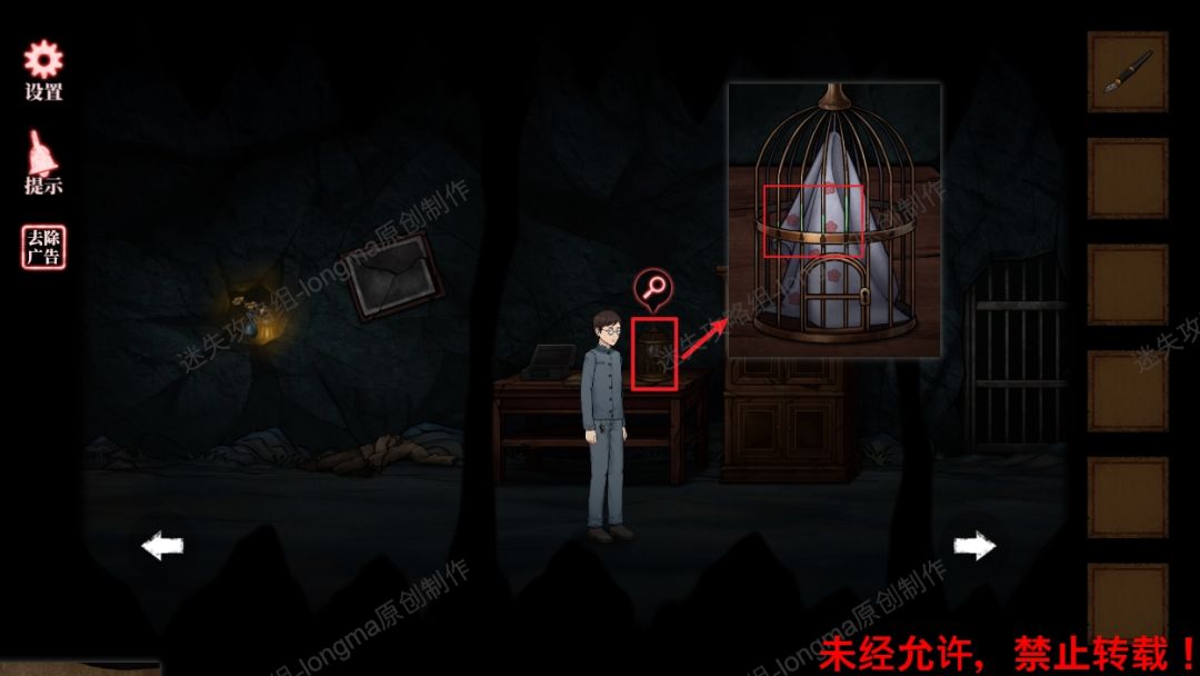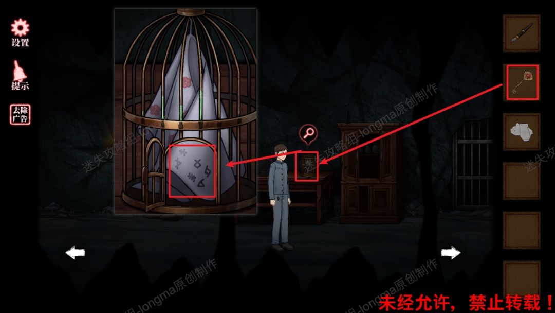 11.使用【钥匙】打开鸟笼,点击里面的布,查看上面的符文。11