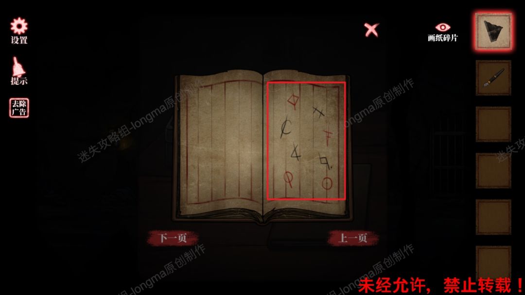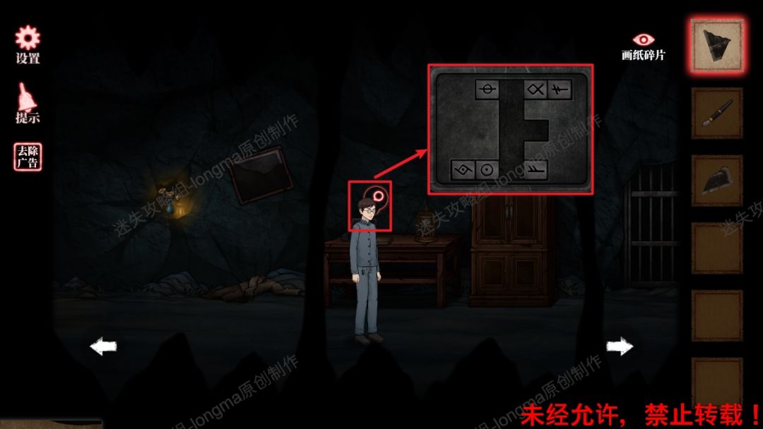 5.向左返回画框处,将【画纸碎片】安装上去,记住背面的图案符号。5