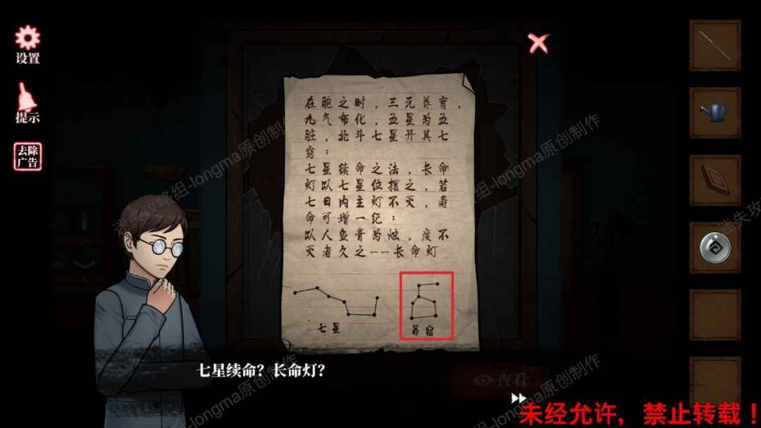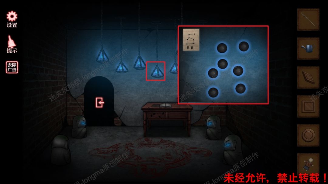 45.查看密室中的吊灯,对照昂宿的图案调整黑点位置(如图45)。45