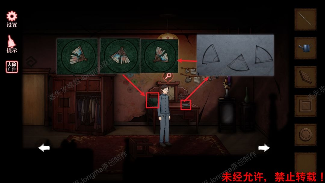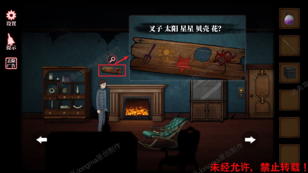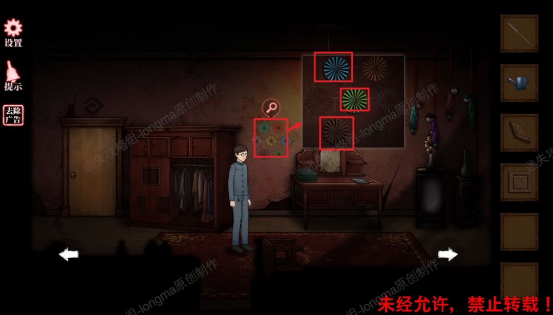 58.查看最右边墙壁,对照之前房间中画框上的图案调整图案,打开暗格机关。58
