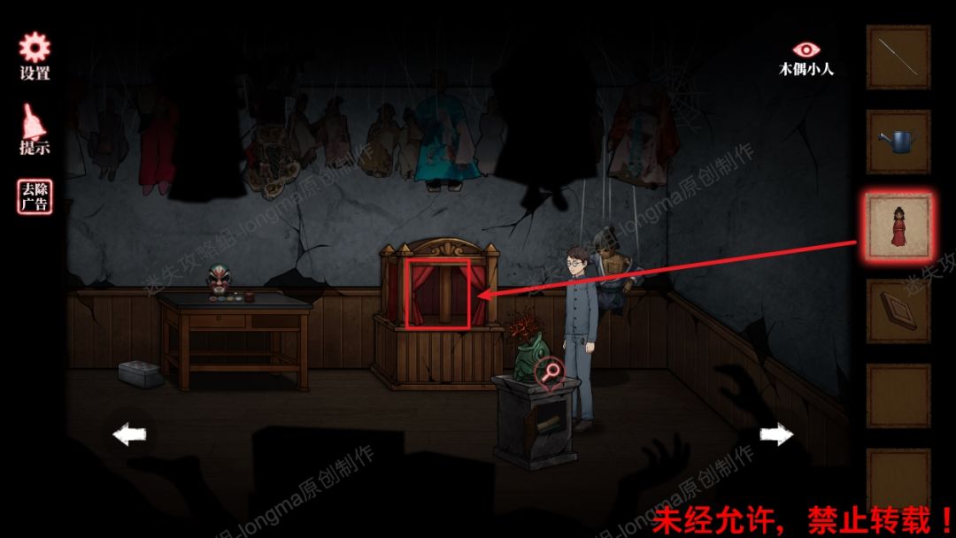 35.【木偶小人】放入戏台上,记住柱子上的方向线索。35 35.1