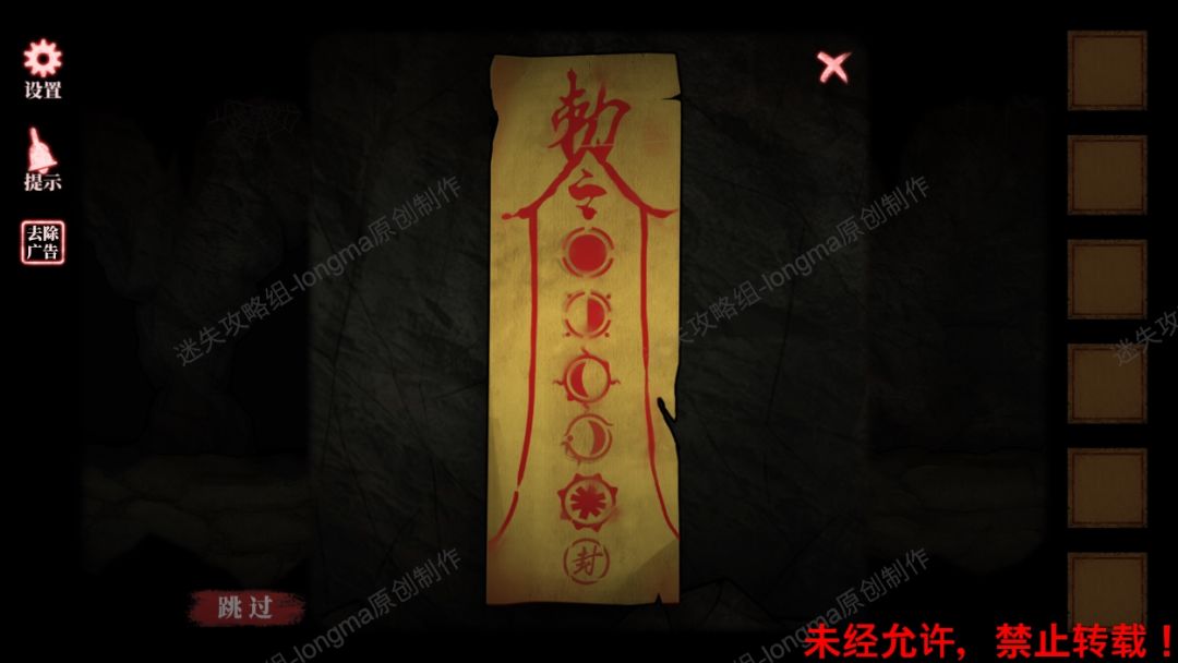 68.查看墙上的符咒,调整上面图案(将图案调整和后面阴影一致,只有“封”字能移动,但最多能移动三格)。68