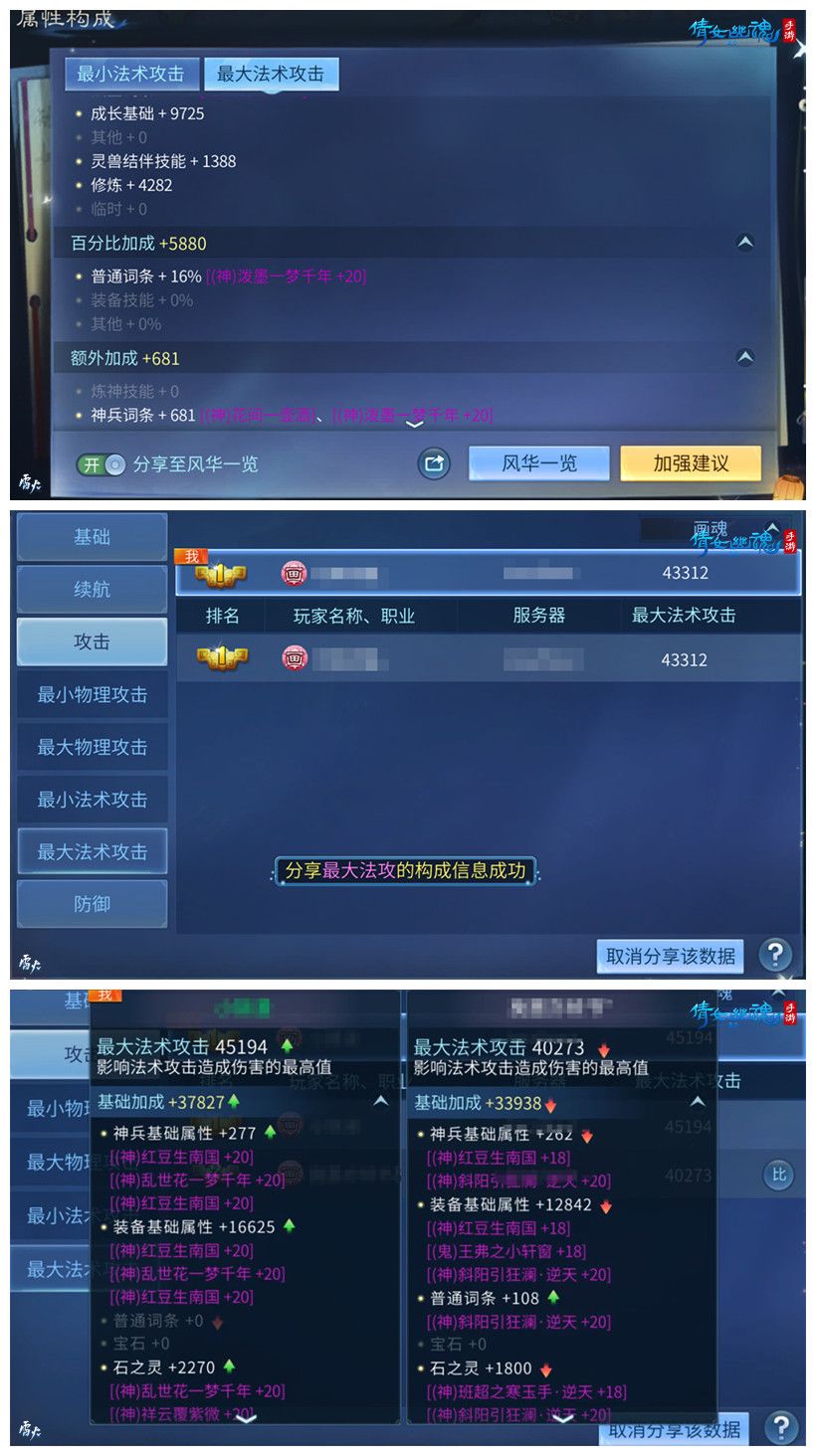 全新属性及技能构成功能上线!部分重要属性点及额外技能等级,玩家点击后可随时查看详细构成,数值来源一目了然!同时,玩家还可以选择一键分享自己的属性构成至【风华一览】榜,一展强势,知己知彼。除此之外,小伙伴们与其他玩家面对面时,亦可通过点击他人头像,对彼此属性进行对比。