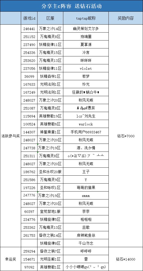 幸运奖: 钻石*14000((随机抽取3位并满足参与条件)