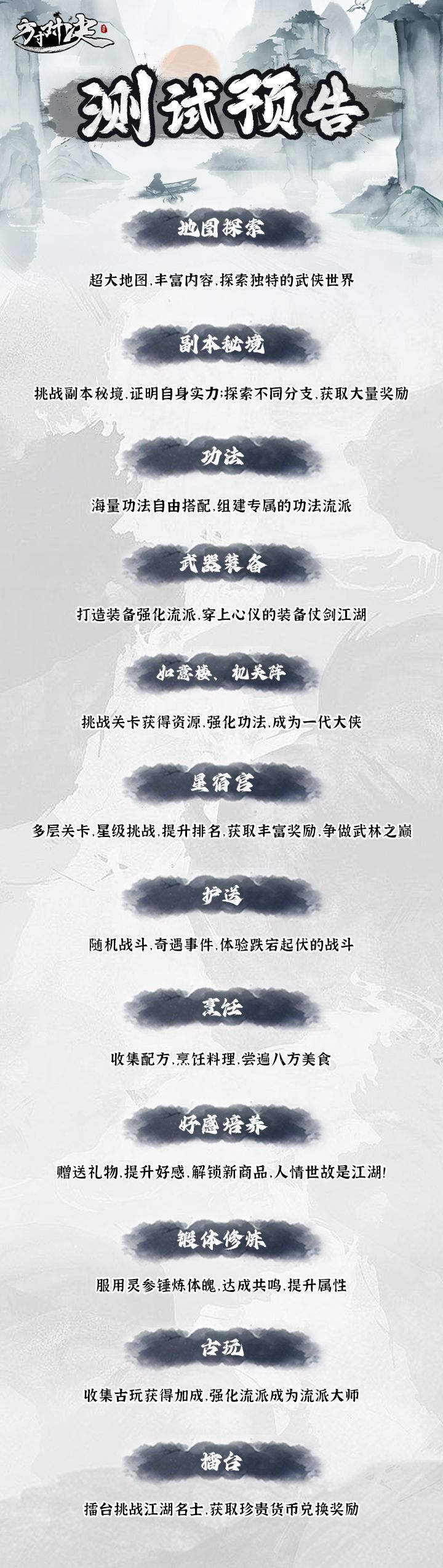 经过一段时间的沉寂和思考我们对上个版本进行了精细的优化和升级,保留了游戏原本的内核,打破边界,努力探索武侠和卡牌的更多可能