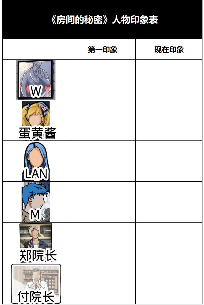 快来留下你的那一份【房间的秘密人物印象表】吧!