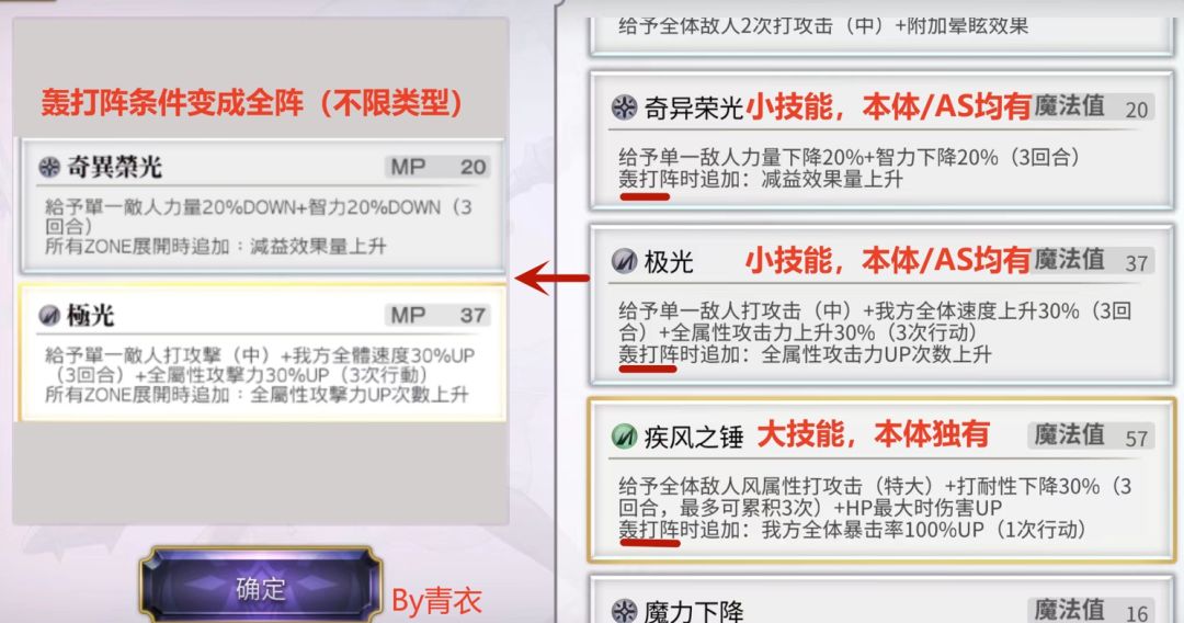 最后,她的VC和千代AS类似,也是不同阵容条件开启不同的阵