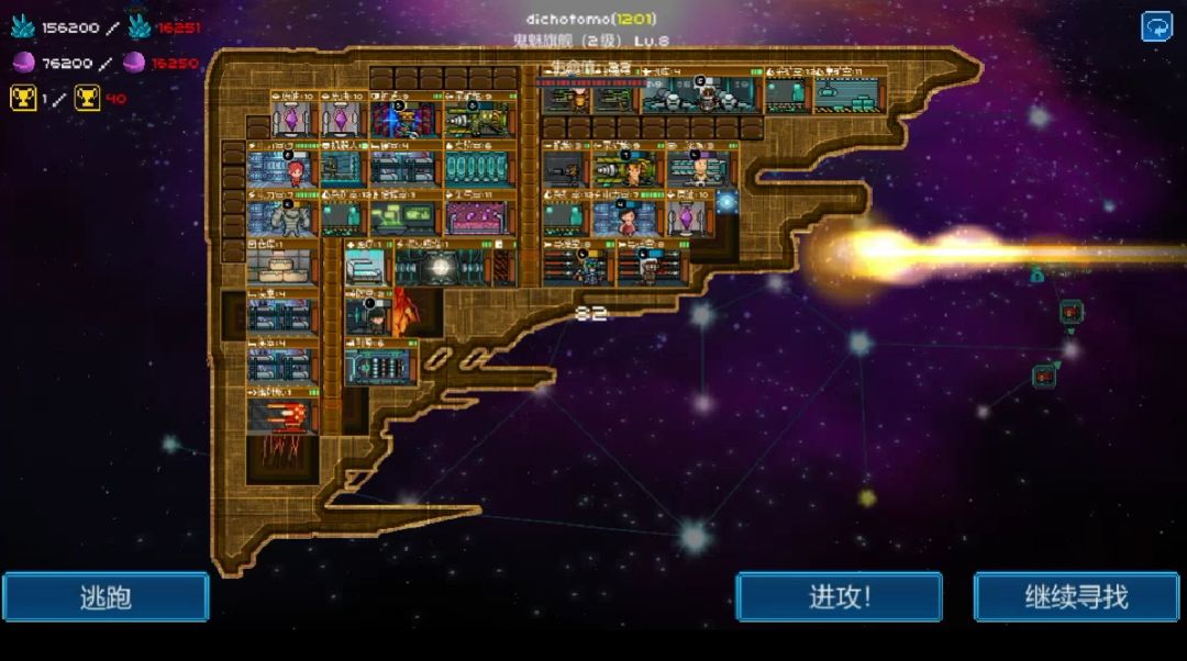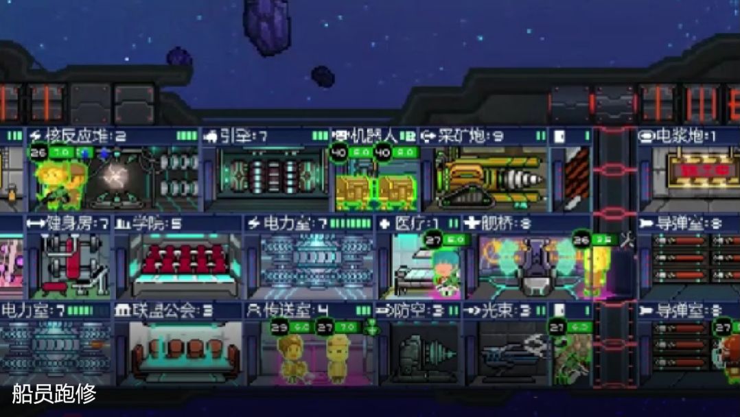 你可以看到,当战斗开启后,愿意为你而战的船员,紧而有序的完成着你下达的指令(修复被破坏的房间,受到攻击的船员转移阵地,勇而无畏的船员登陆敌舰肆意破坏!