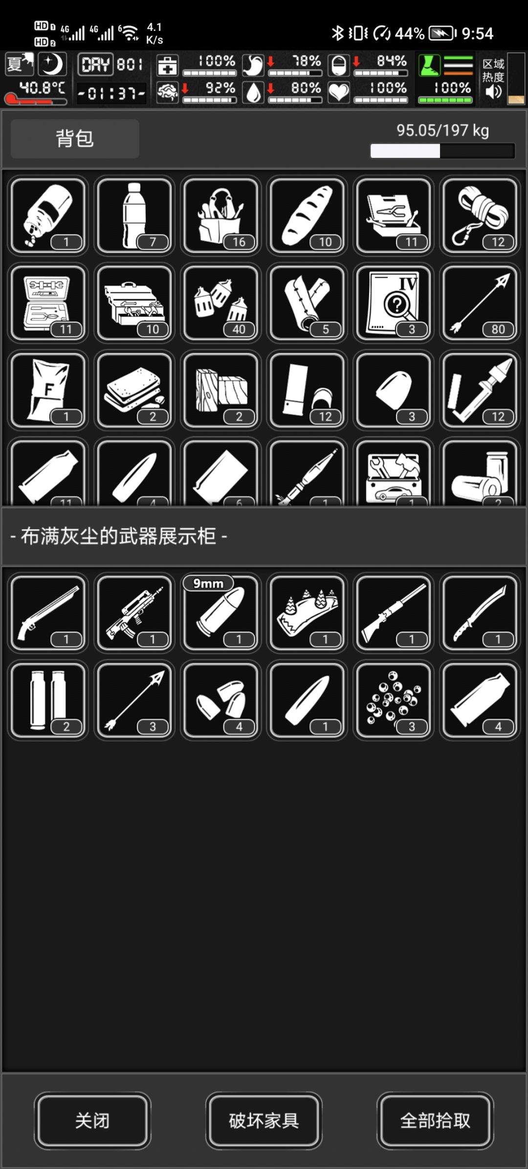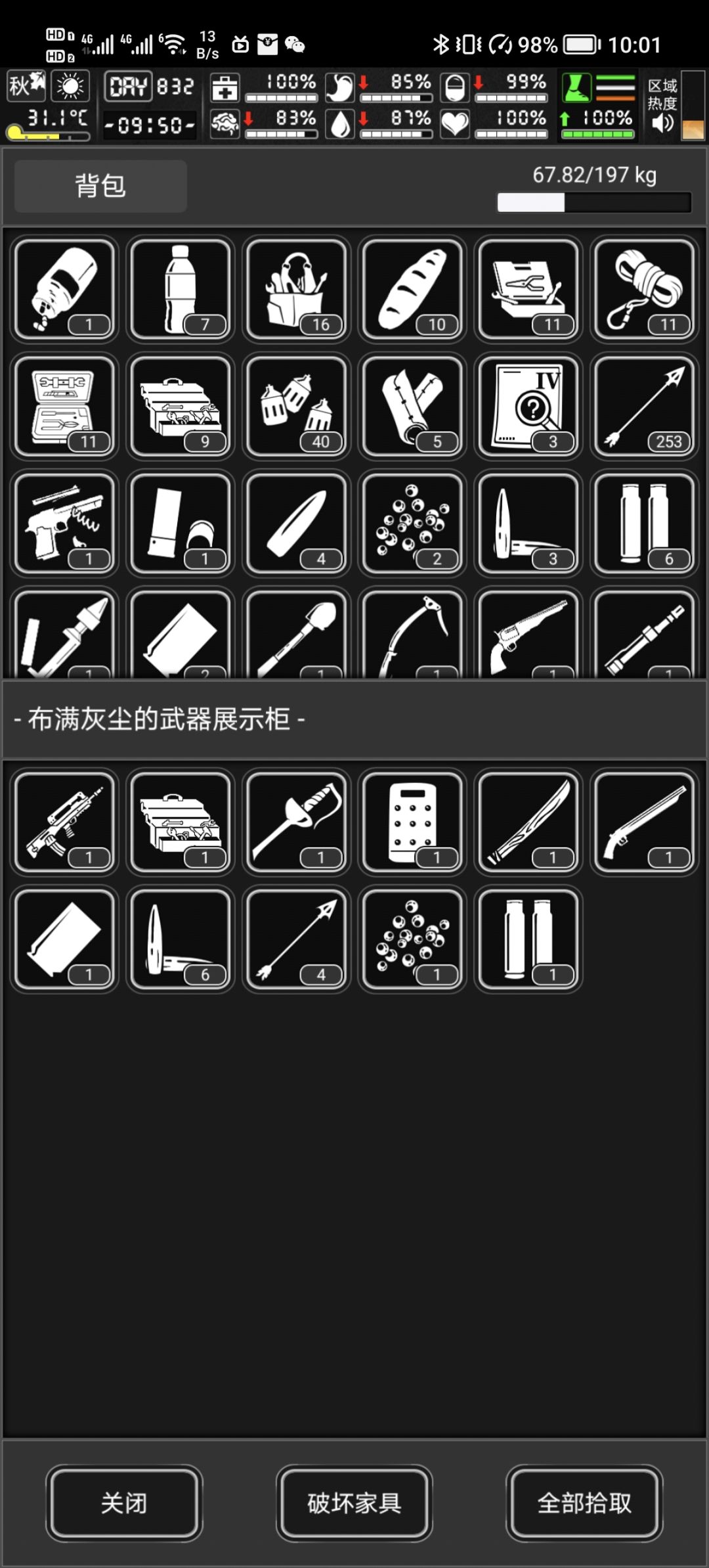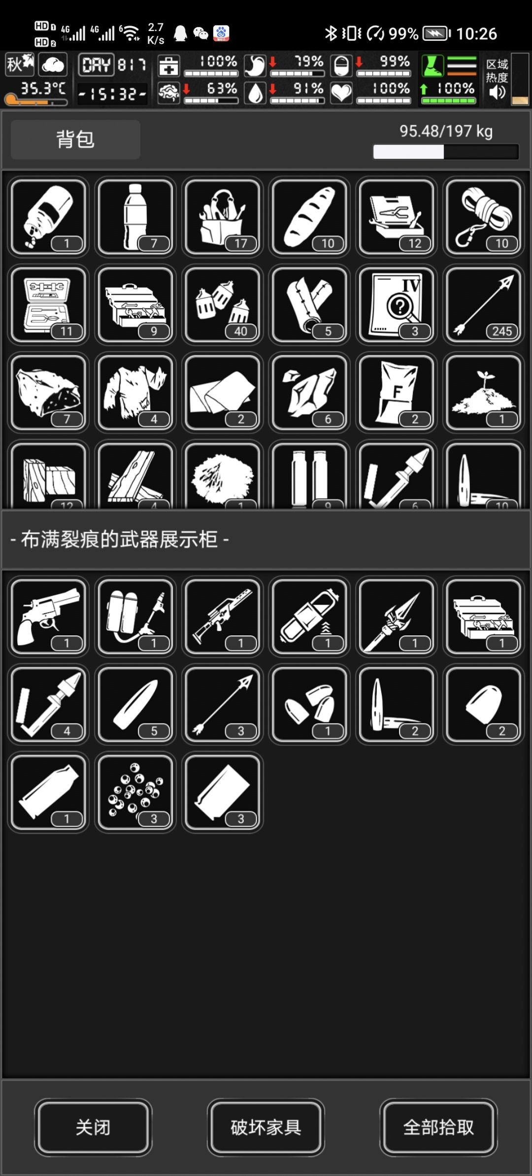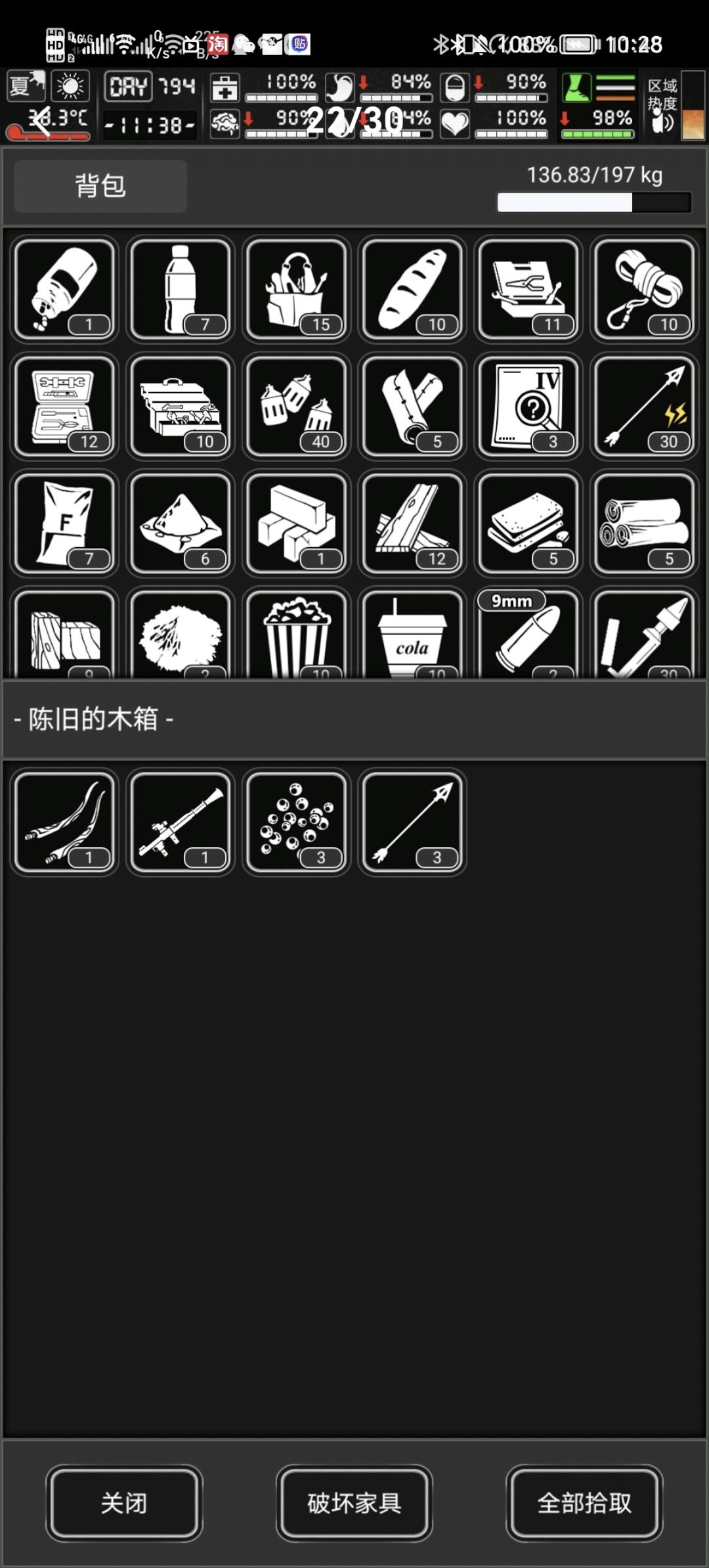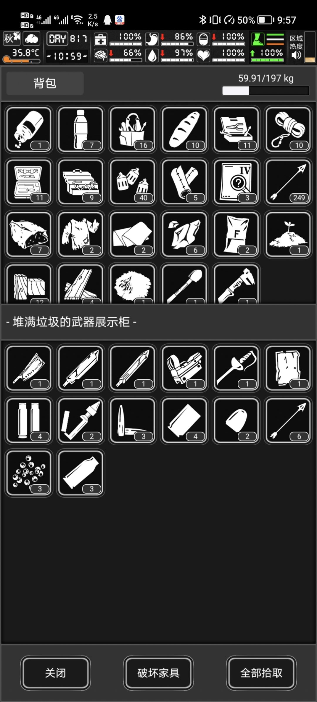 还有一点是,出货的物资是取决于最后一次开锁(就是说,如果你开锁中途被打断,会影响你的物资)打个比方,你开一个49秒的武器柜,被一只怪或者拉肚子打断了(突发事件也会)剩下7秒,开的东西就是7秒锁(所以在噪音高的时候先睡一会儿再开锁)