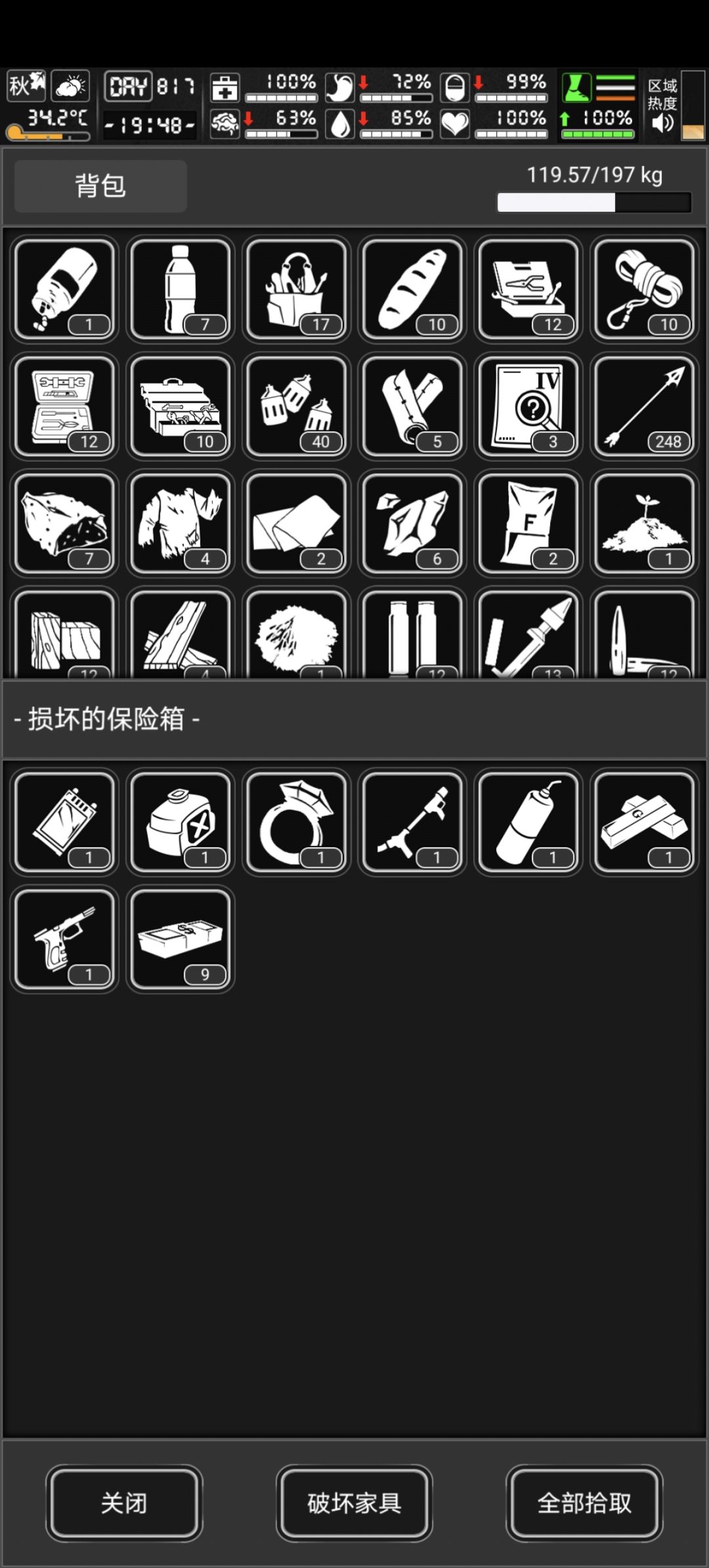 附::关于上锁——锁的时间决定你隐藏物品出多少,时间越长,在出货的情况下隐藏物品越多(你没出货的时候,捡到的垃圾也会更多)