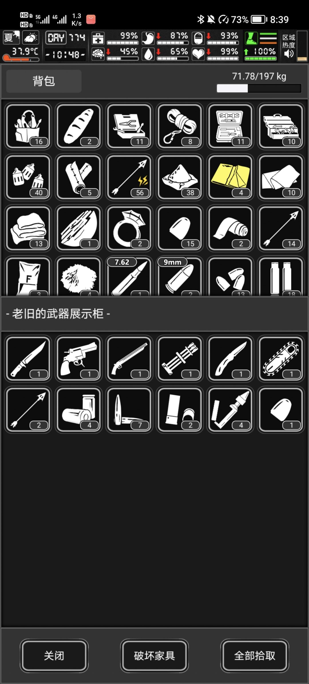 ,全搜集物资(除了活动限定),没缺的了,sg550这种也有个20来把了…(虽然没多大用)
