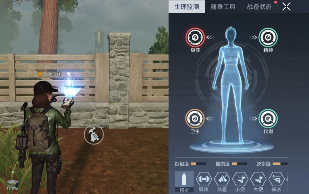 因此,为了能够保证自己的角色时刻处于最佳状态。各位新人玩家需要时常查看关注自己角色的生存系统的数据。渴了要喝水、累了要休息、衣服脏了要洗衣服,也不要忘了定期锻炼、上厕所哦。