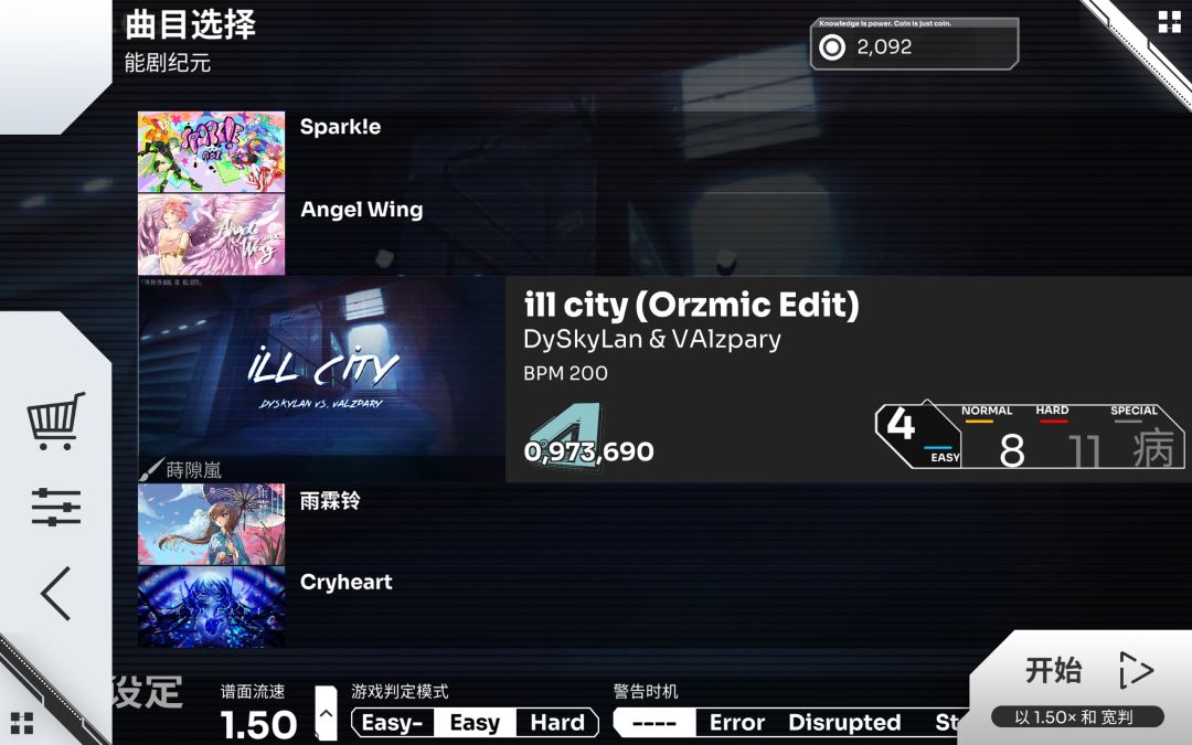 从Easy开始刷的话是和解锁隐藏曲无缘的