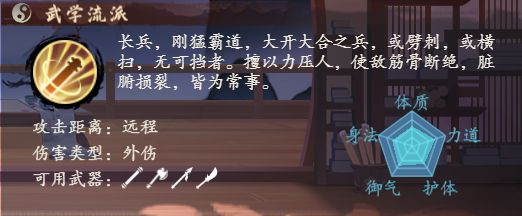 周鹤作为长兵武学流派侠客,可以使用棍、长枪、长刀、长斧等长兵流派武器。修习的功法也需要为长兵流派,周姑娘在历经机缘荣登九霄宫前,也经历了不少磨砺,相信在各位掌门的培养下能够展现宗师全盛之姿。