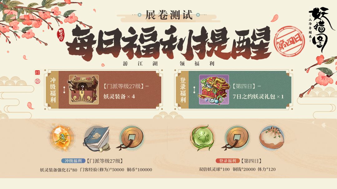 在今天,只要掌门的门派等级到达27级,即可领取一封福利邮件,邮件包含了4种不同类型的妖灵装备、妖灵装备强化石*80个、门客经验*50000、铜币*100000,助力掌门行走江湖!