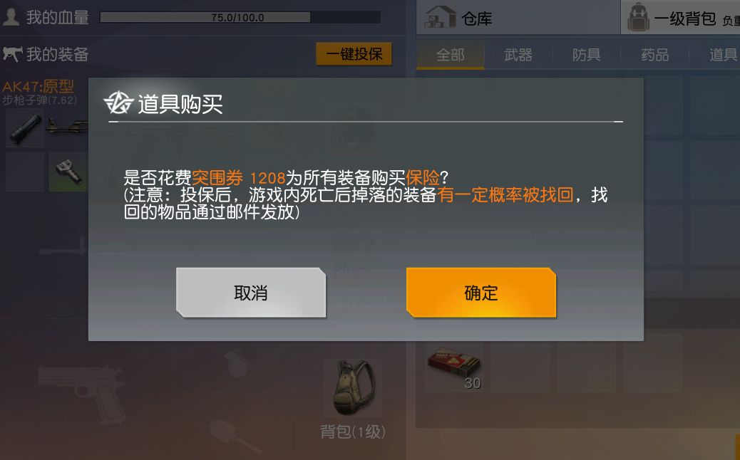半岛突围设有保底机制:投保和保险箱。投保后只能收回被淘汰后掉落的部分装备,能收到枪还是收到矿泉水?不好意思,全看运气~