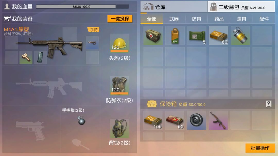 补漏王推荐在发育阶段背上三级包进入战斗,因为背包容量升级的同时,保险箱容量也随之扩大,可以带出更多物资。