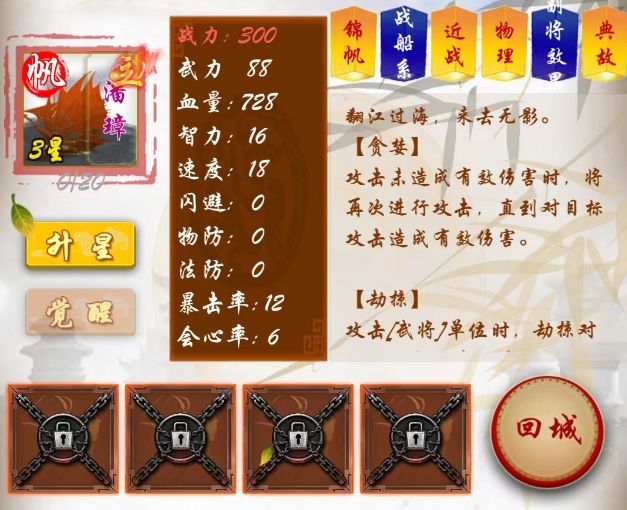 由于孙权军团没有续航单位,以上两技能可以让锦帆在霸业某些关卡时,凸显奇效。