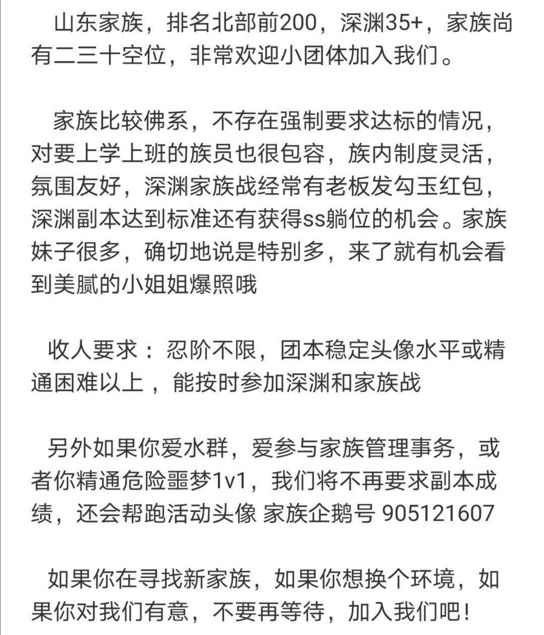 来看看俺们家族的招人帖子叭