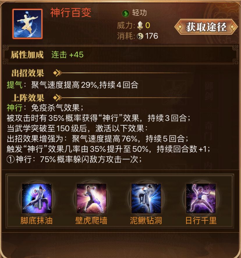 闪避武学葵花神功,天天剑法,门派两个轻工叠满层,凌波神行,