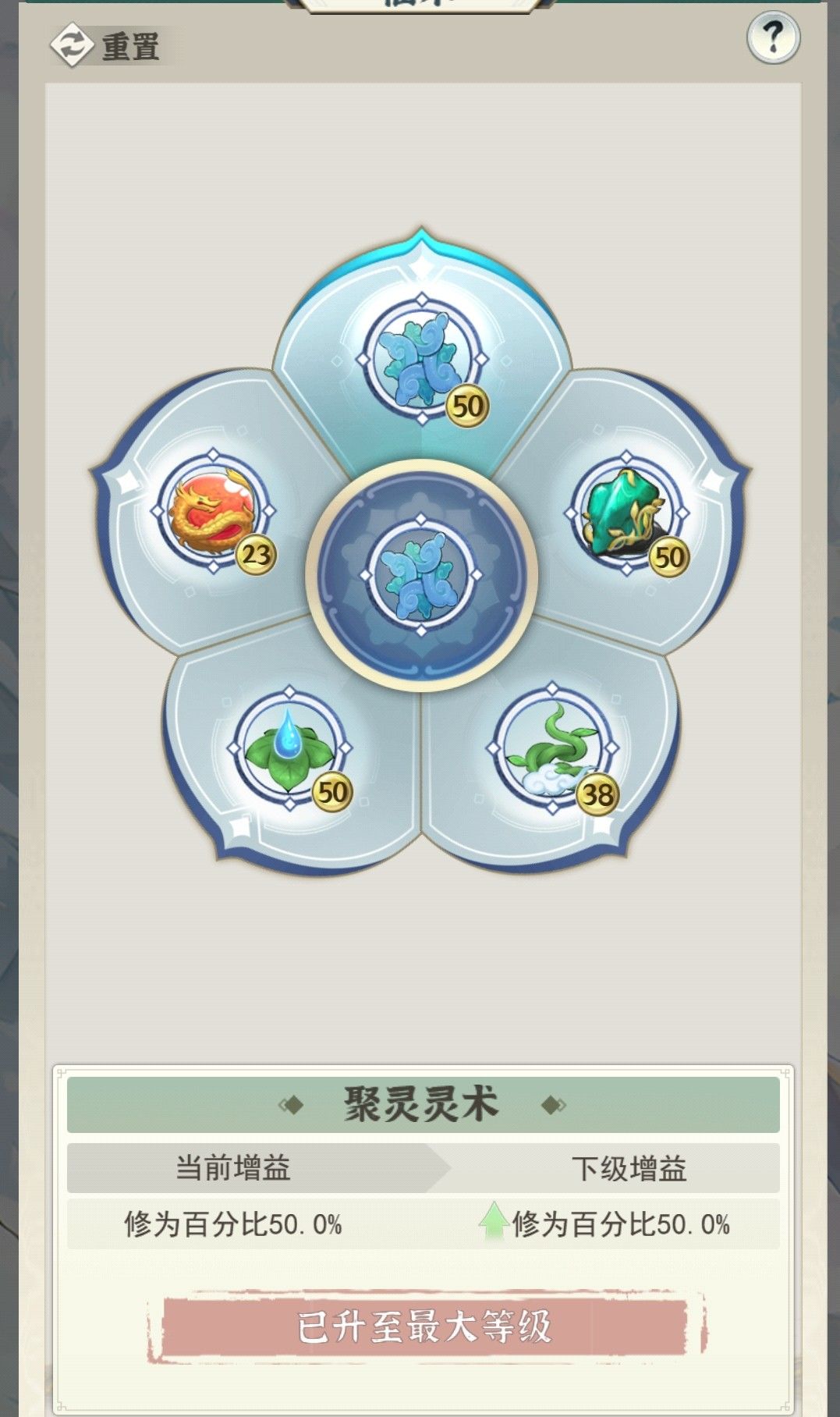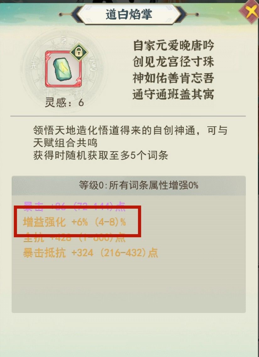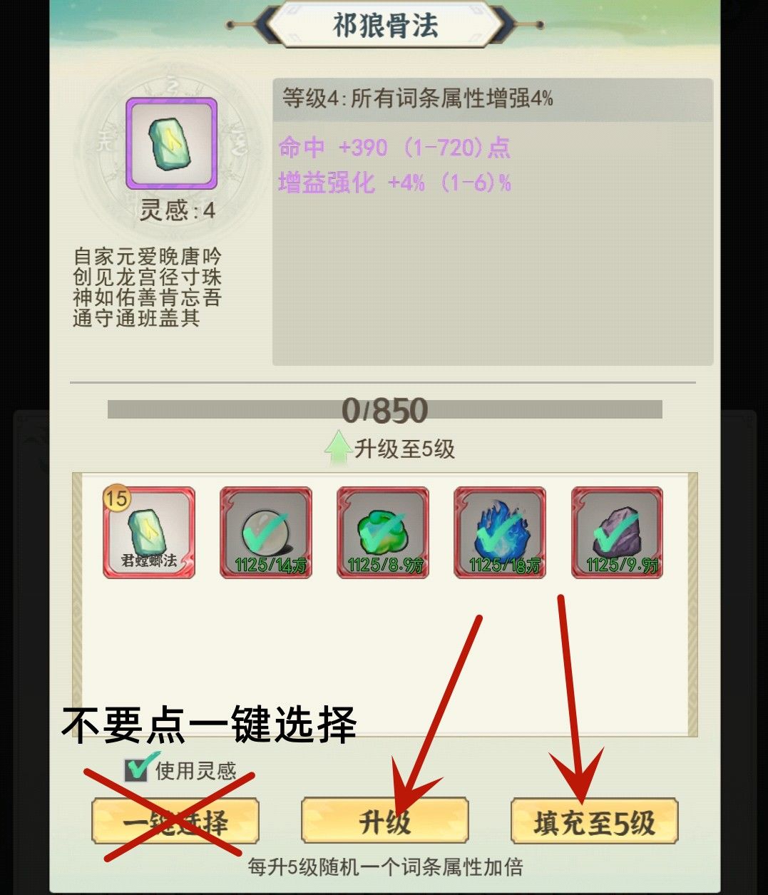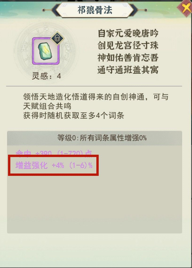 接下来选填充到5级,一定是5级!不要直接升到20级!把那些没有增益效果的神通当狗粮,如果强化歪了,那么就把神通解锁,给其他神通当狗粮