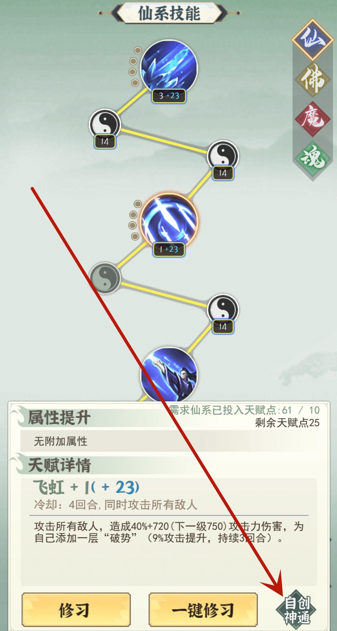 打开天赋,你会发现多了一个自创神通